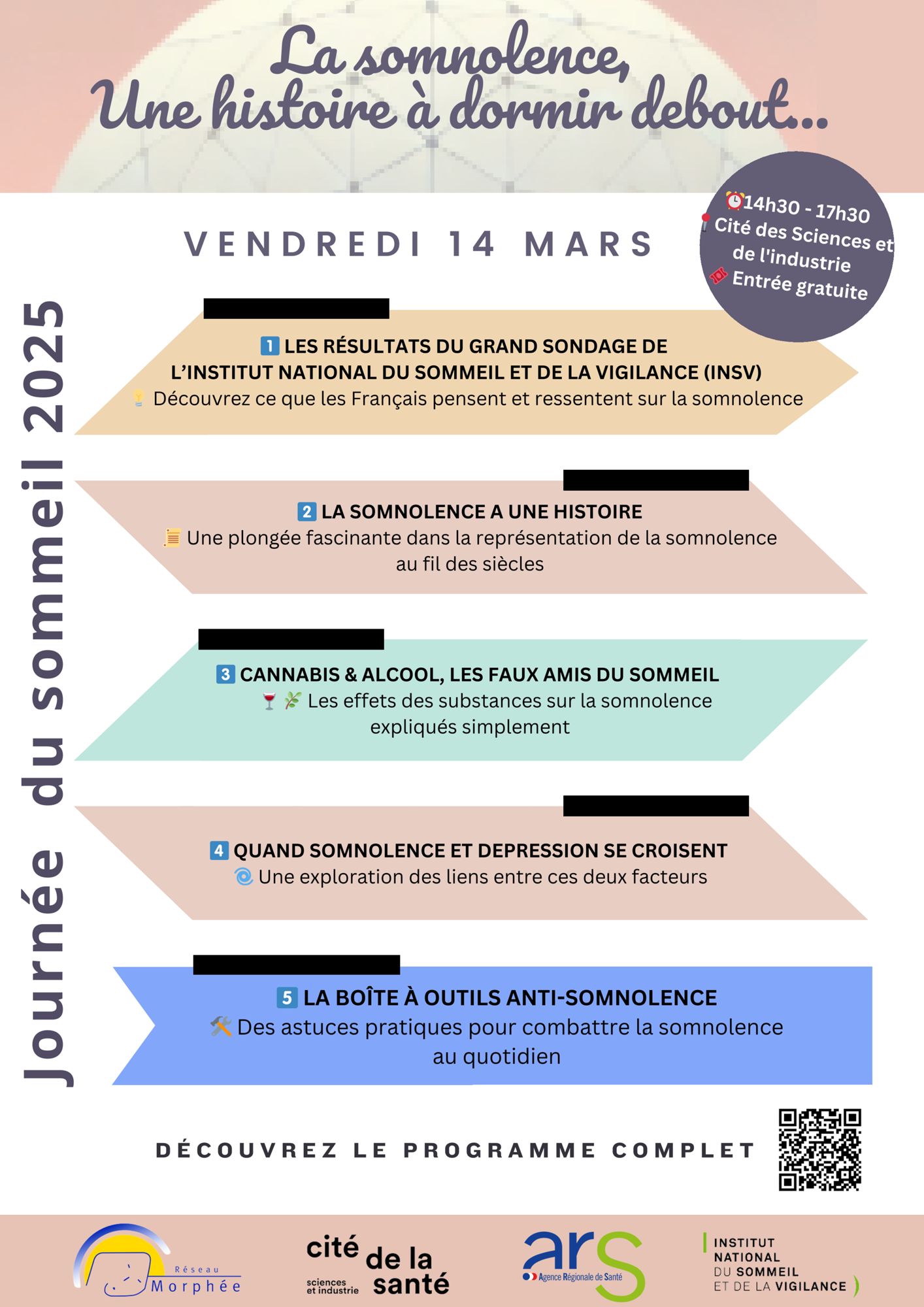 Le Réseau Morphée répond à nouveau présent à cette 25ème édition de la Journée Nationale du Sommeil, le vendredi 14 Mars à 14h30. Pour rappel, cette journée est un événement organisé chaque année par l’INSV.