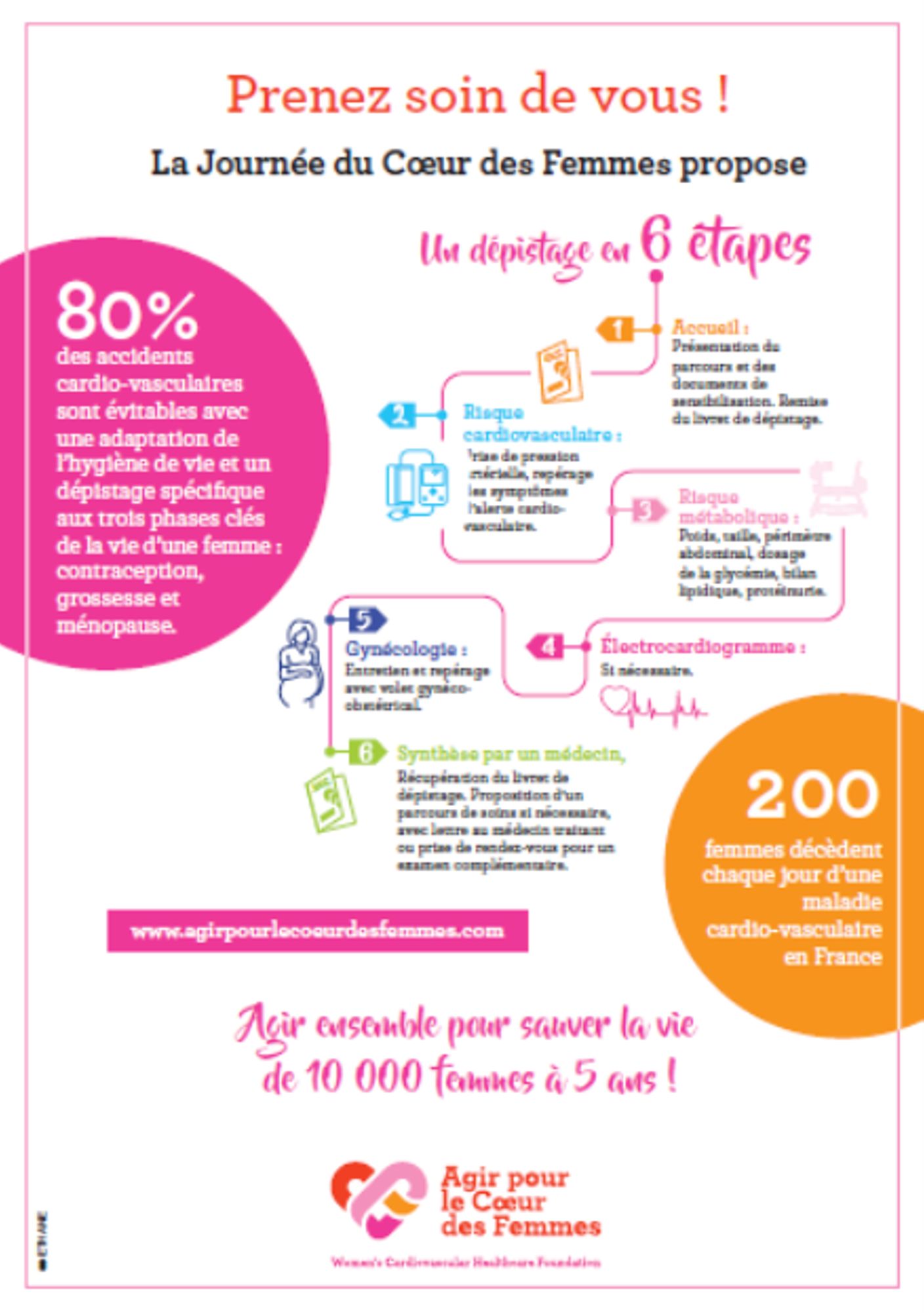 L’association Agir pour le cœur des Femmes s’engage pour réduire les inégalités de genre en santé, à travers l’appui au déploiement d’opération de dépistage cardiovasculaire et de prévention sur les territoires. Les Journées du cœur des femmes visent notamment à dédramatiser l’hôpital, à faire entrer la prévention dans ses murs, et à permettre à un public éloigné du soin de rentrer dans un parcours afin d’améliorer, globalement, l’état de santé des femmes sur le territoire.