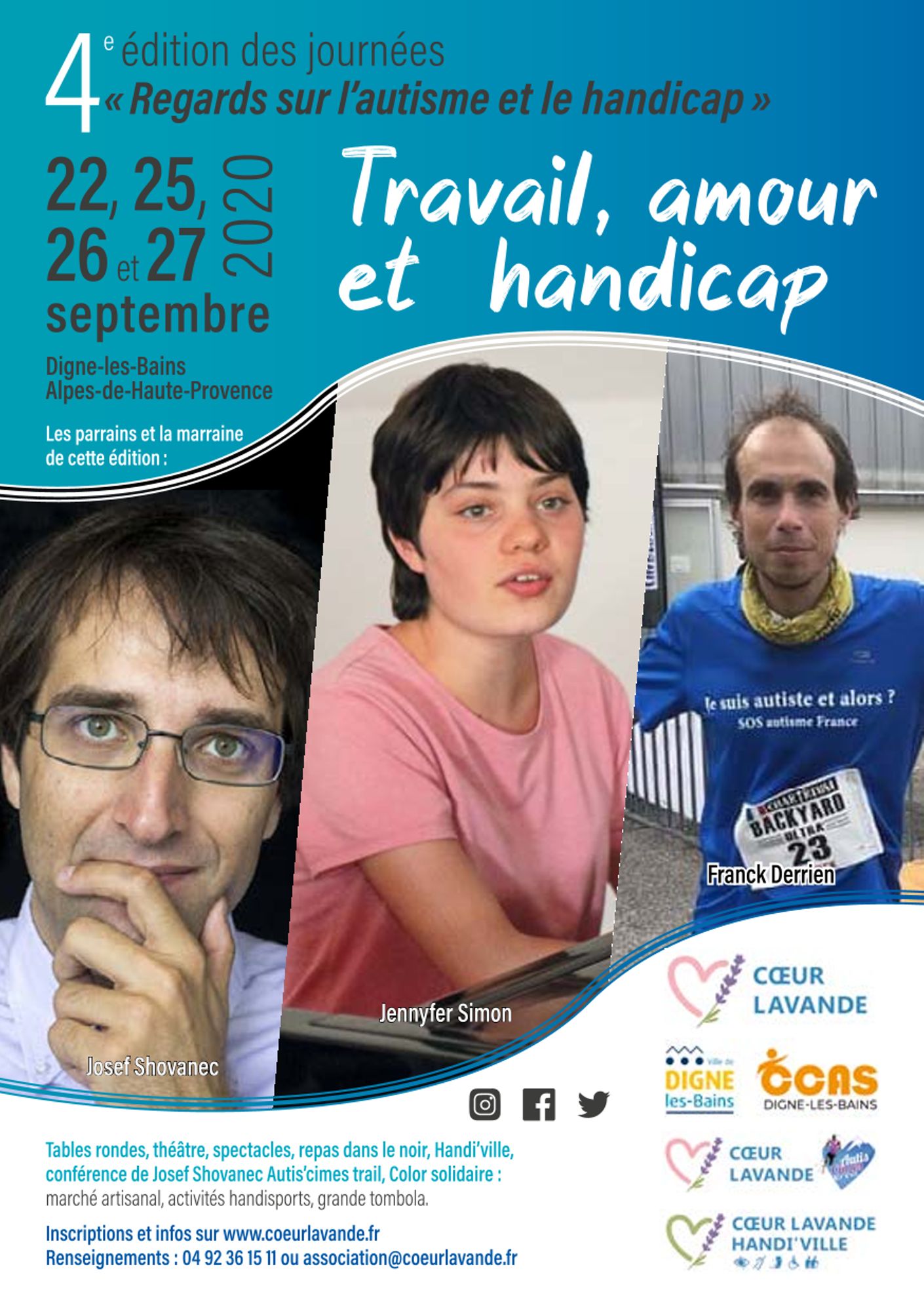 Enfin, je vous transmets le programme de la 4eme édition des journées sur l'autisme et le handicap organisé par Cœur Lavande sur le thème «Travail, Amour et Handicap » et qui aura lieu à Digne du 22 au 26 septembre.