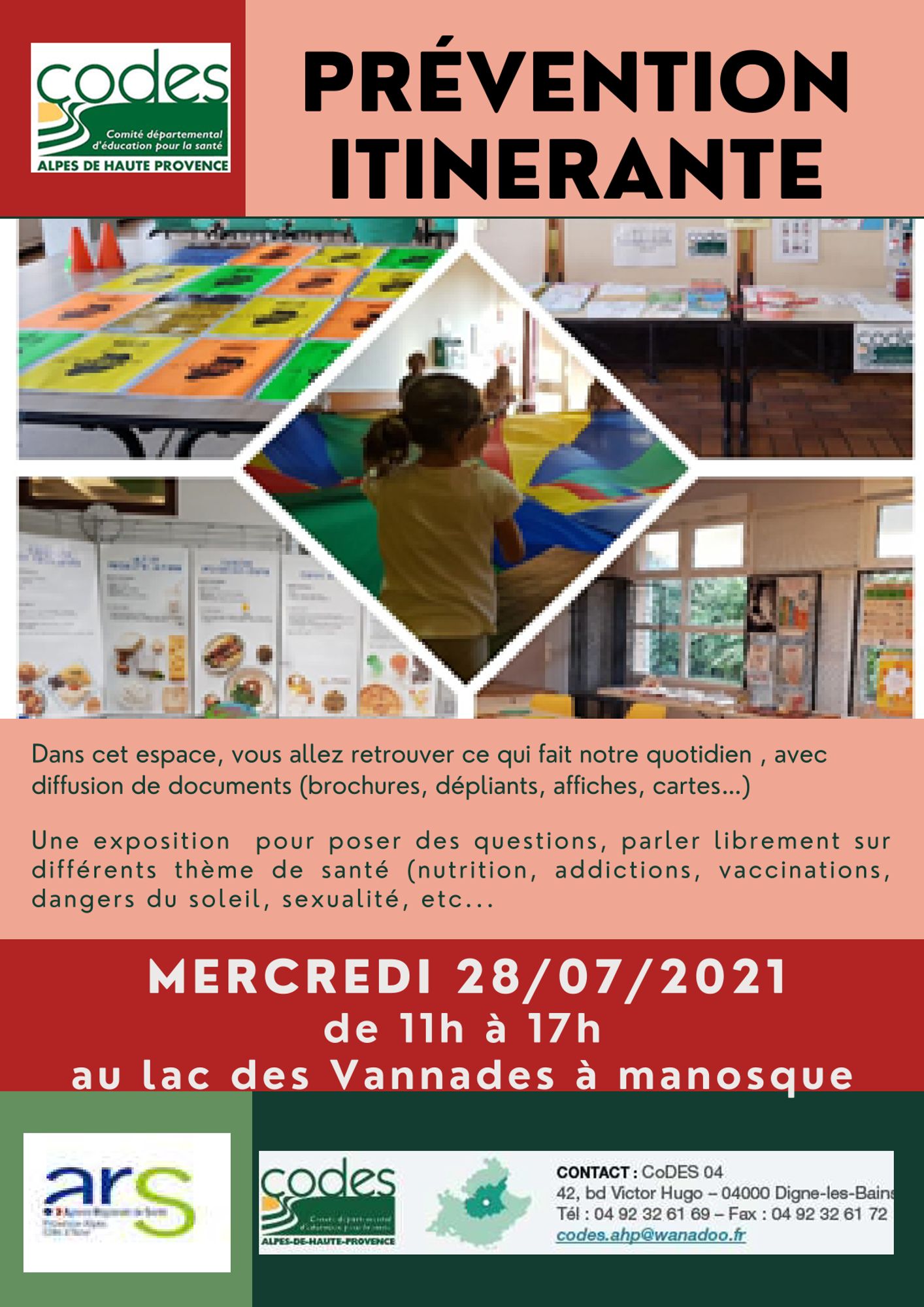 Prévention Itinérante au Lac des Vannades de Manosque Dernière modification : 25 août 2021 Affiche action Prévention Itinérante (353.2 Ko)