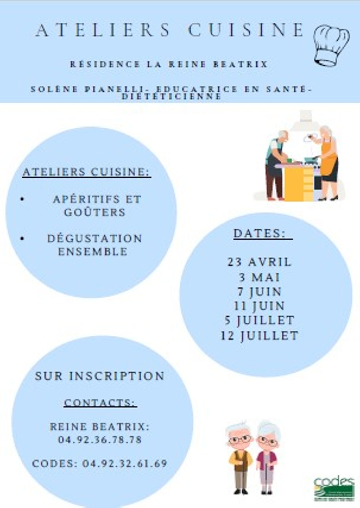 ATELIERS CUISINE - Résidence La Reine Béatrix 23 avril, 3 mai, 7 juin, 11 juin, 5 juillet et 12 juillet 2024 Flyer Ateliers cuisine séniors (1).pdf (144.9 Ko)