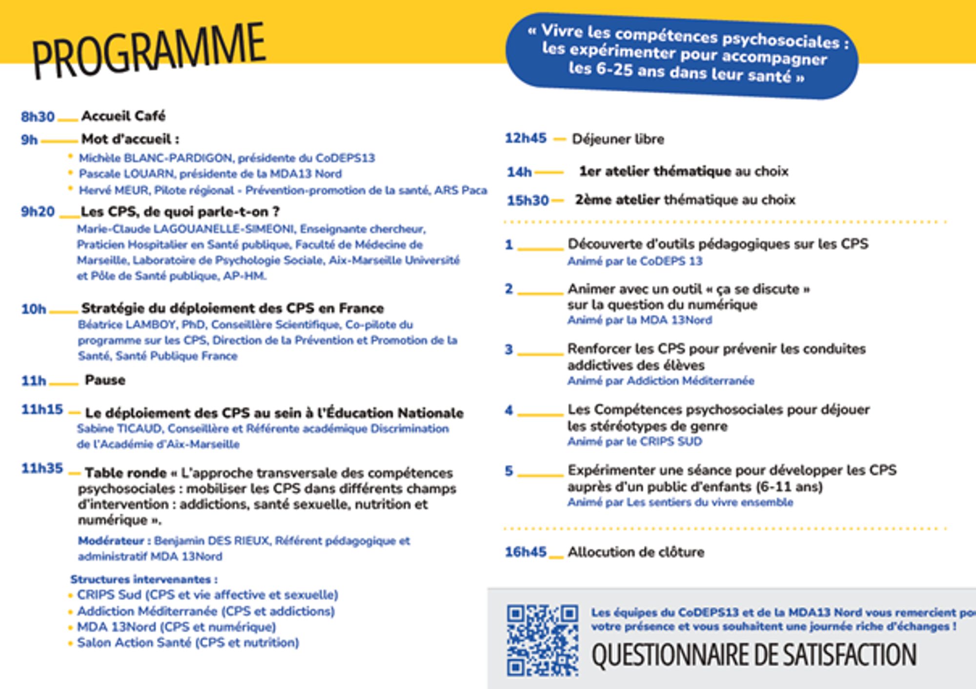 Colloque Compétences psychosociales "Vivre les compétences psychosociales : les expérimenter pour accompagner les 6-25 ans dans leur santé"