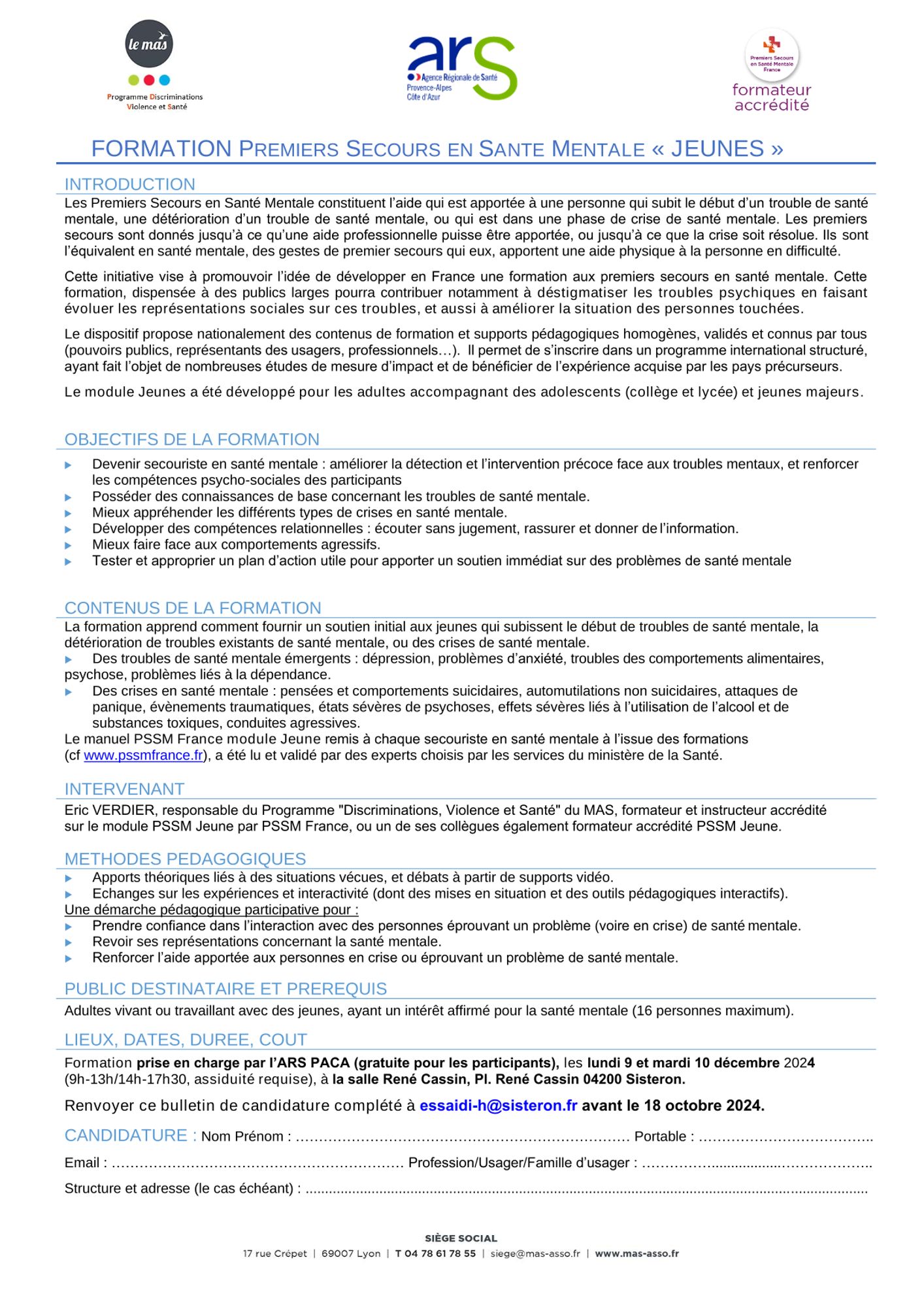 Formation Premiers Secours en Santé Mentale - Module Jeunes