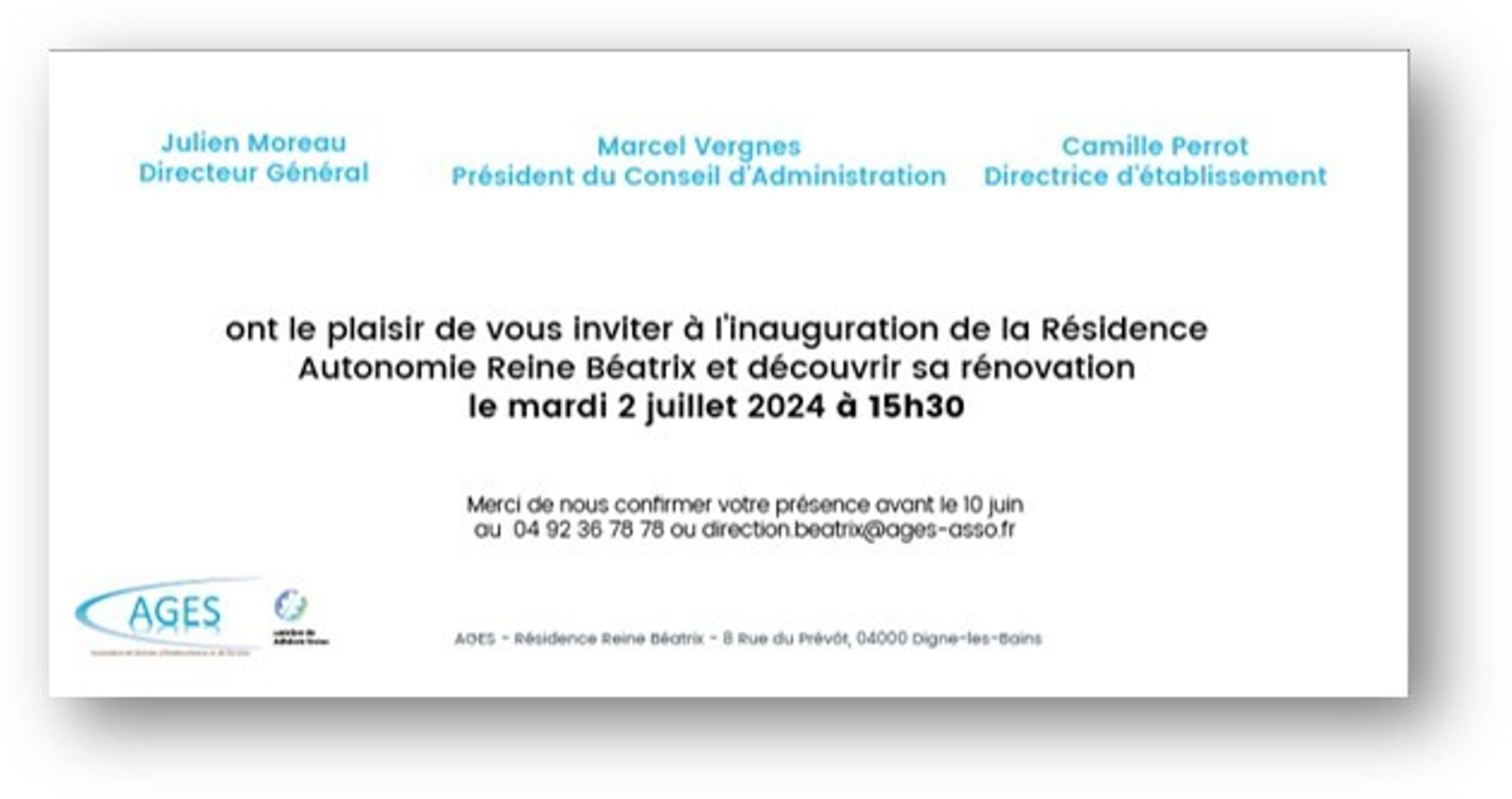 Inauguration Résidence Autonomie Reine Béatrix et découvrir sa rénovation Mardi 2 juillet 2024 à 15h30