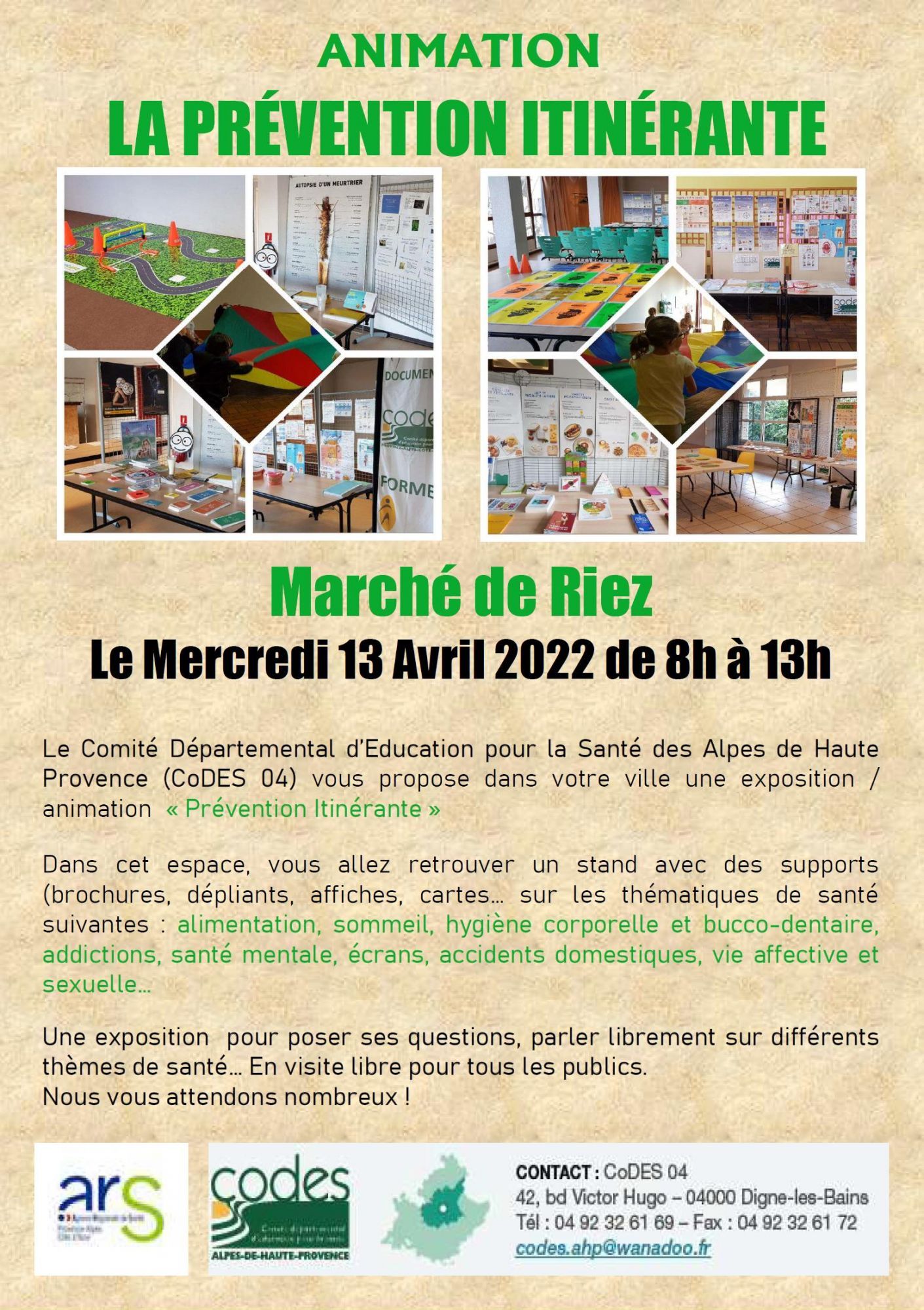 La Prévention Itinérante (marché de Riez) Dernière modification : 12 avril 2022 Nous vous attendons nombreux !