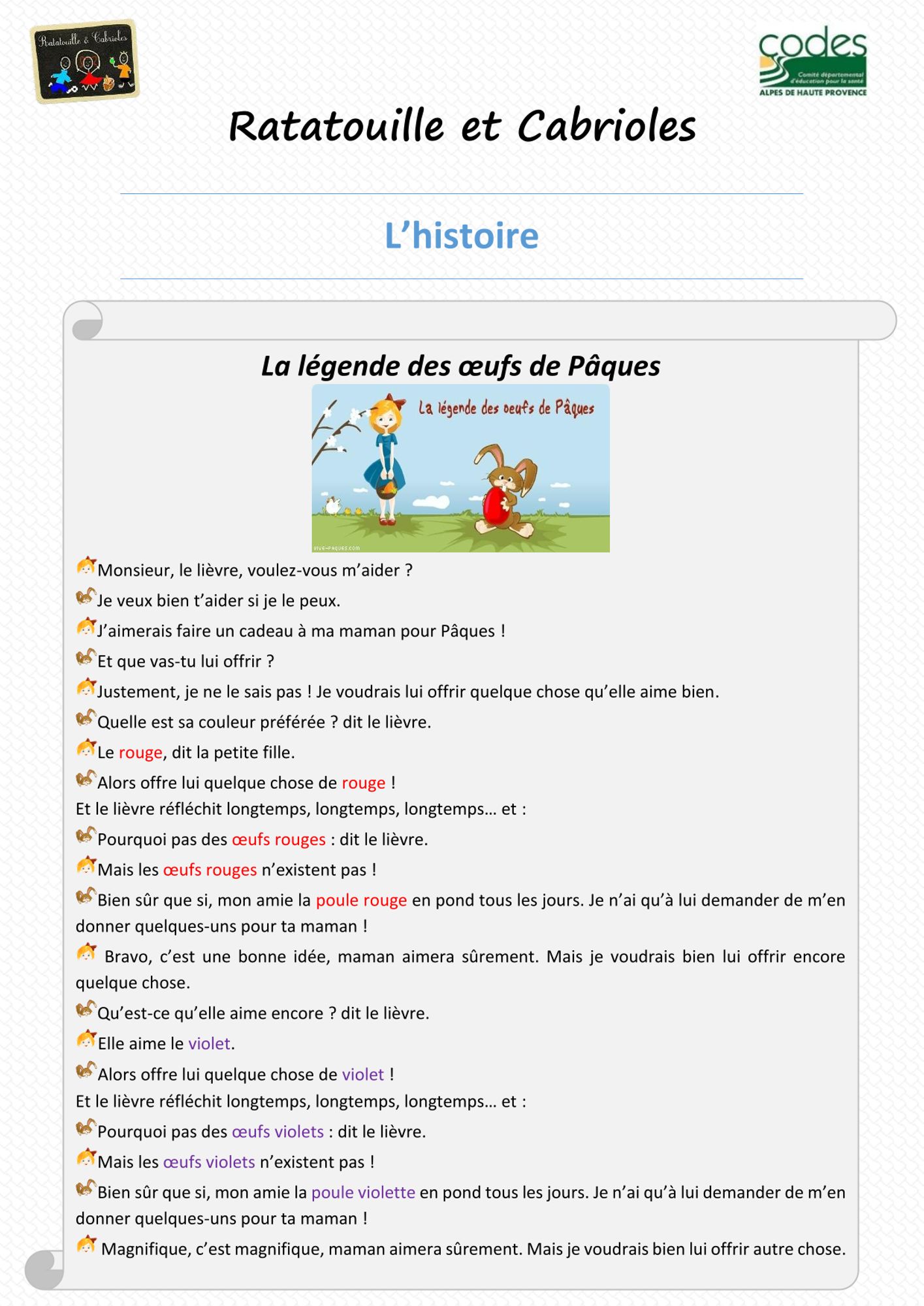 Pour cette période Pascale, nos diététiciennes ont confectionné un livret d’activités, à l'usage des enseignants partenaires, de nos jeunes bénéficiaires et de leurs parents.