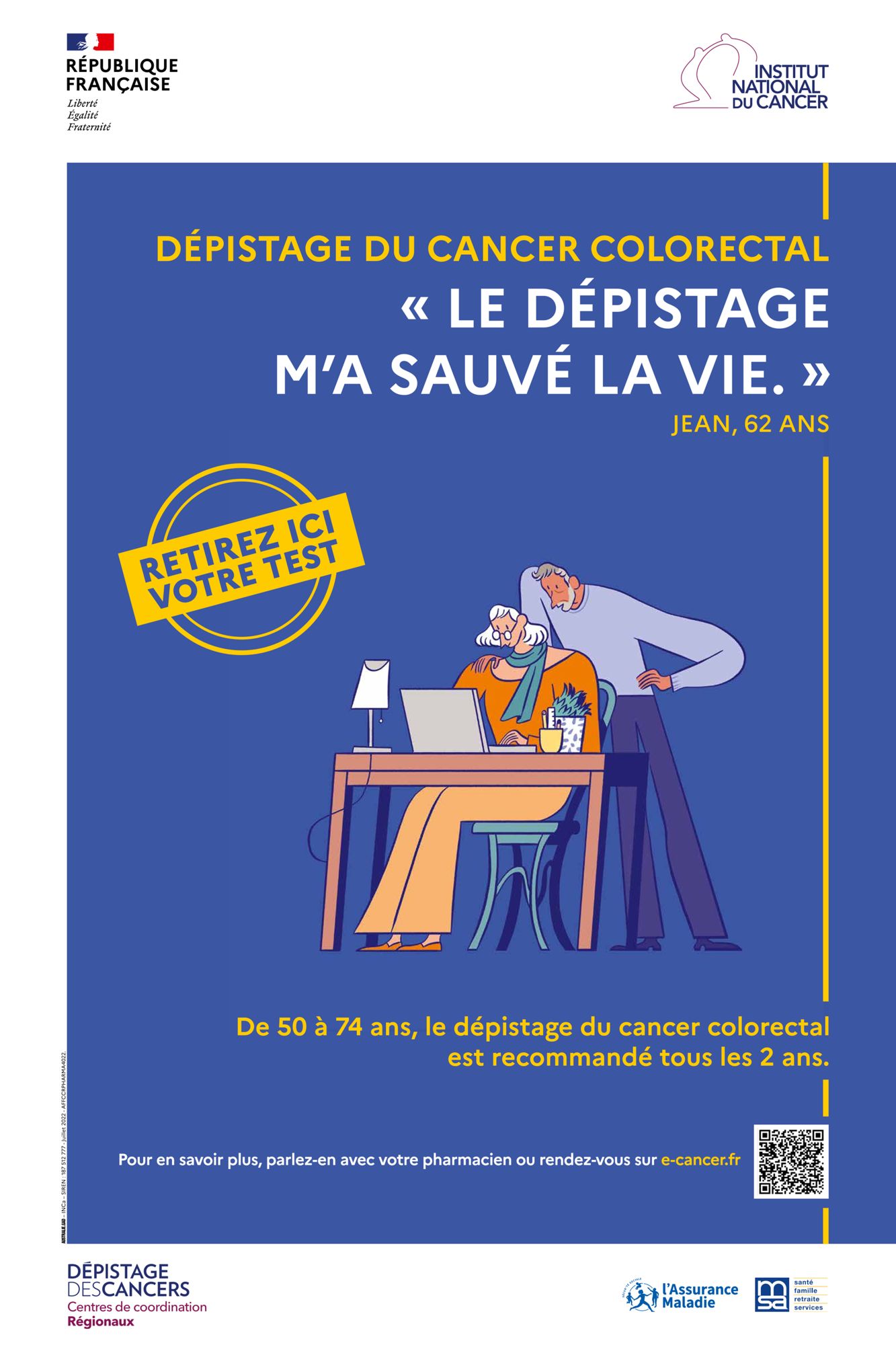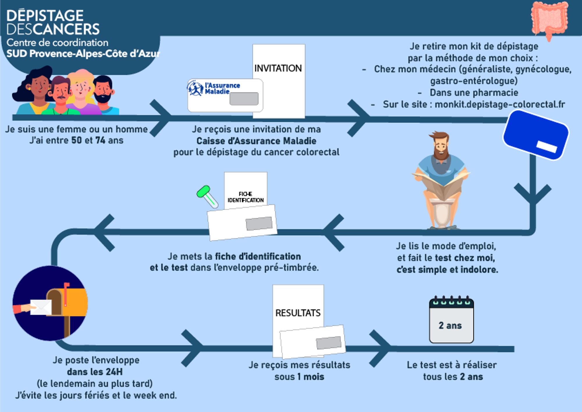 Le test de dépistage du cancer colorectal est simple, rapide, fiable, indolore à faire chez soi.