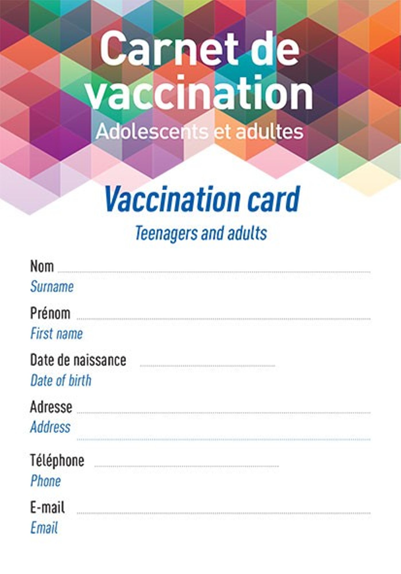 Le carnet de vaccination adolescents-adultes est utile pour assurer le suivi de ses vaccinations.