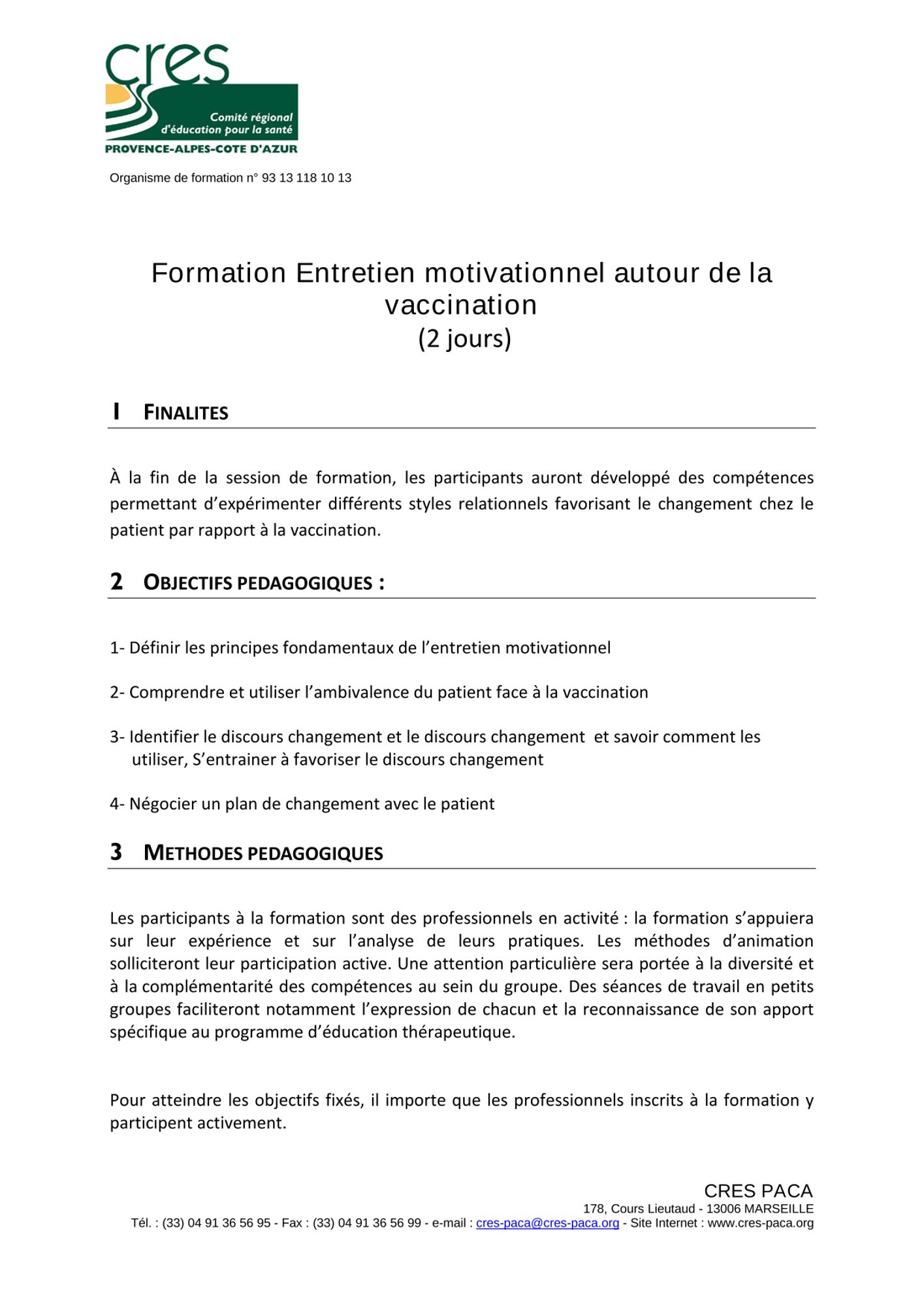 Formation à l'entretien motivationnel en vaccination de niveau 1 (2 jours) les 16 et 17 septembre 2025, au CRES à Marseille, pour les acteurs de la vaccination de la région