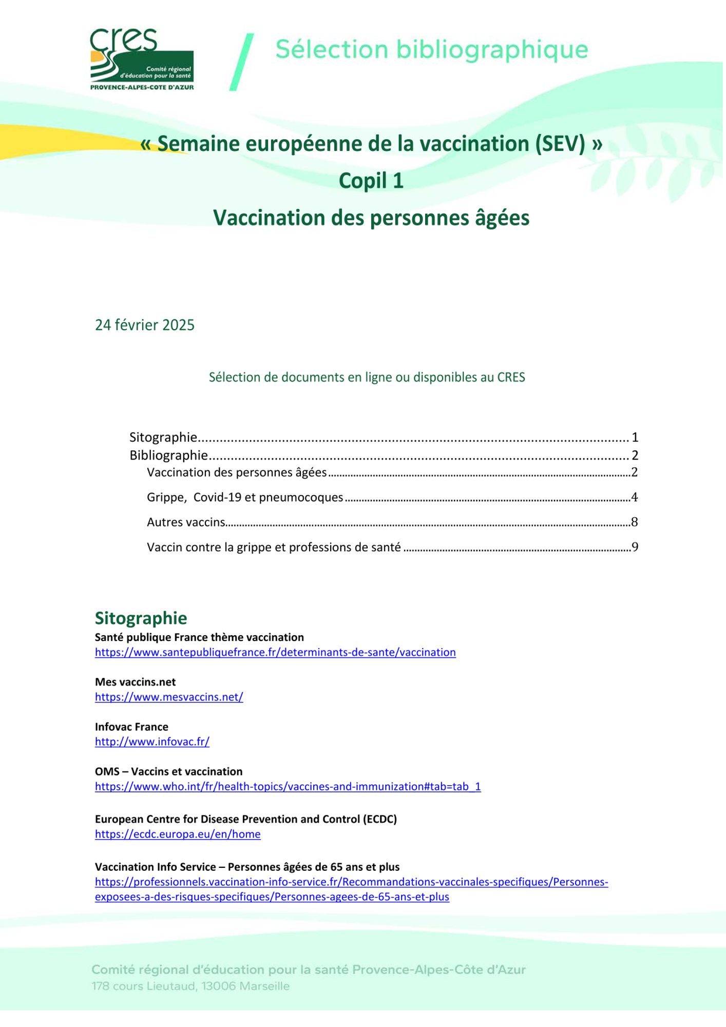 Bibliographie sur la vaccination des personnes âgées, priorité de cette année, réalisée par les documentalistes du CRES PACA.