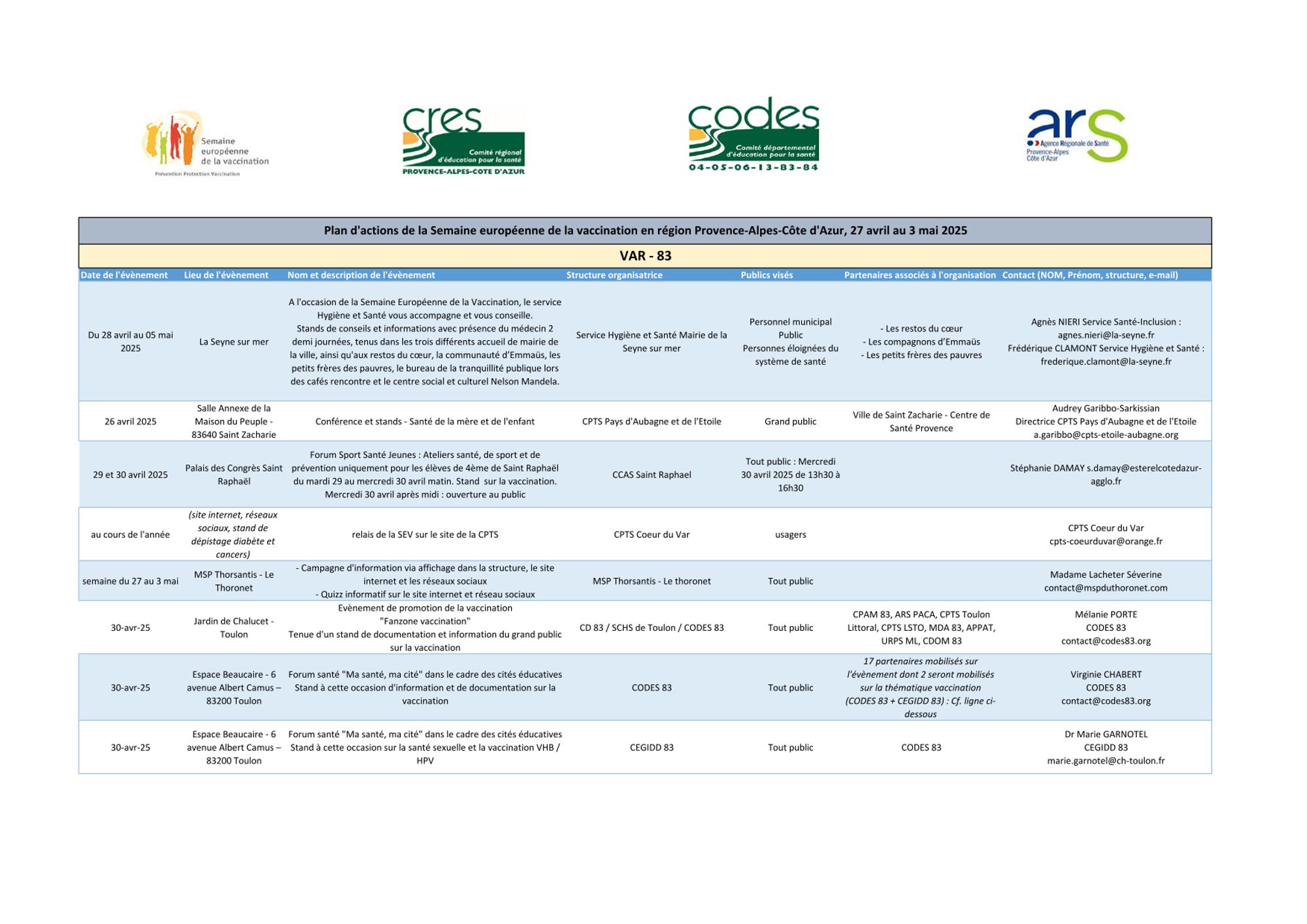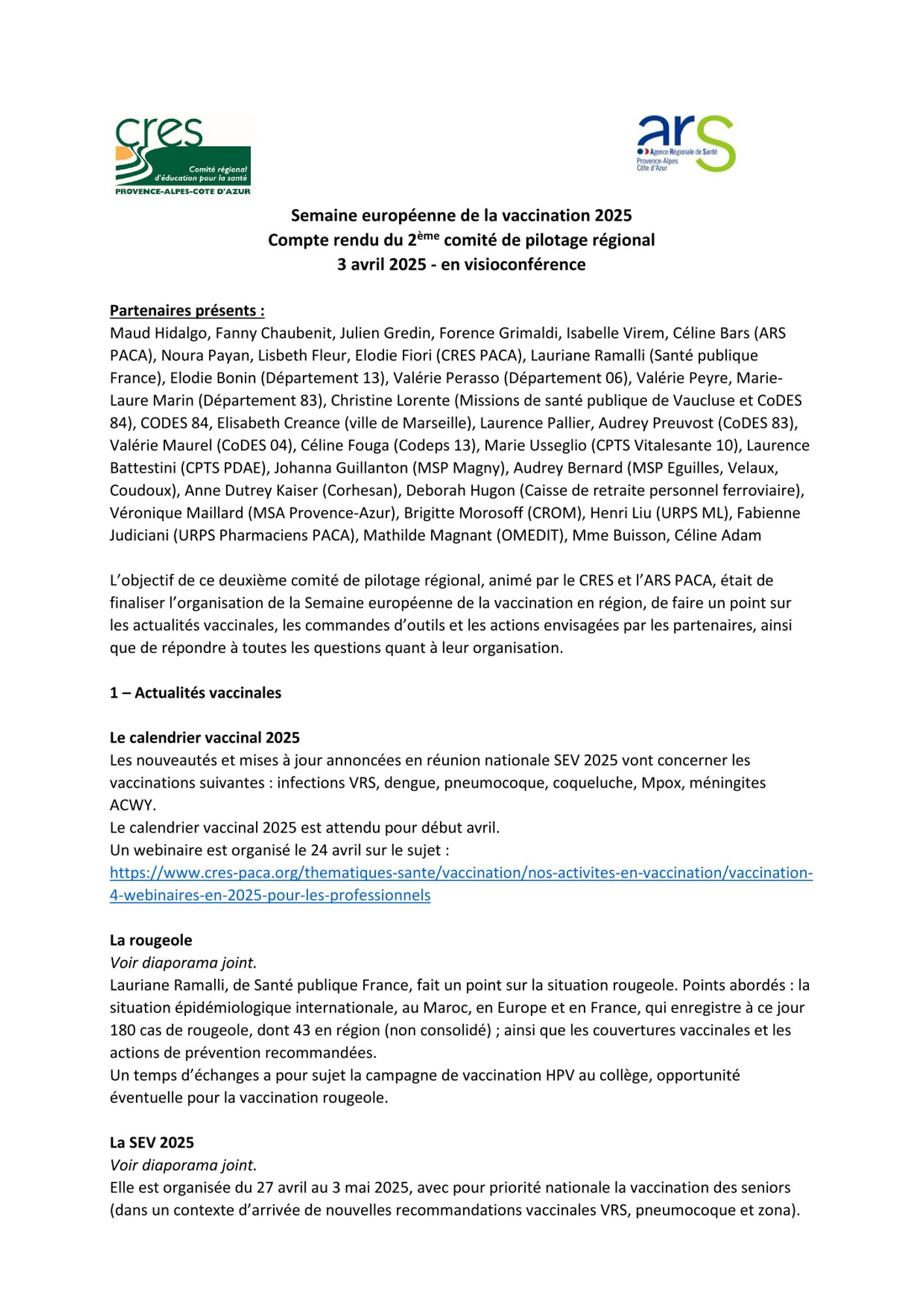 Calendrier 2025 des webinaires vaccination proposés par le CRES et l'ARS PACA :
