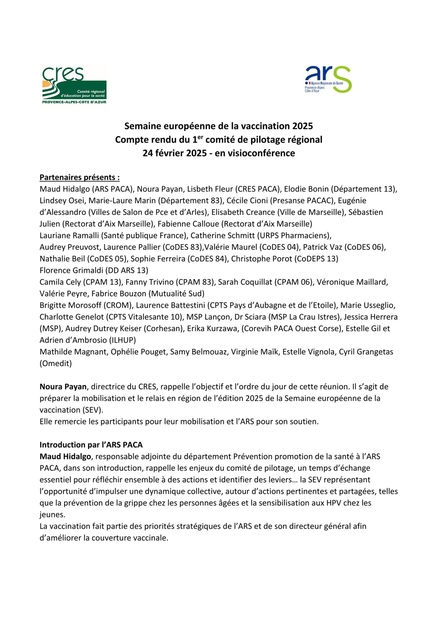 Copil Régional CRES / ARS PACA. Retrouver les diaporamas et comptes rendus