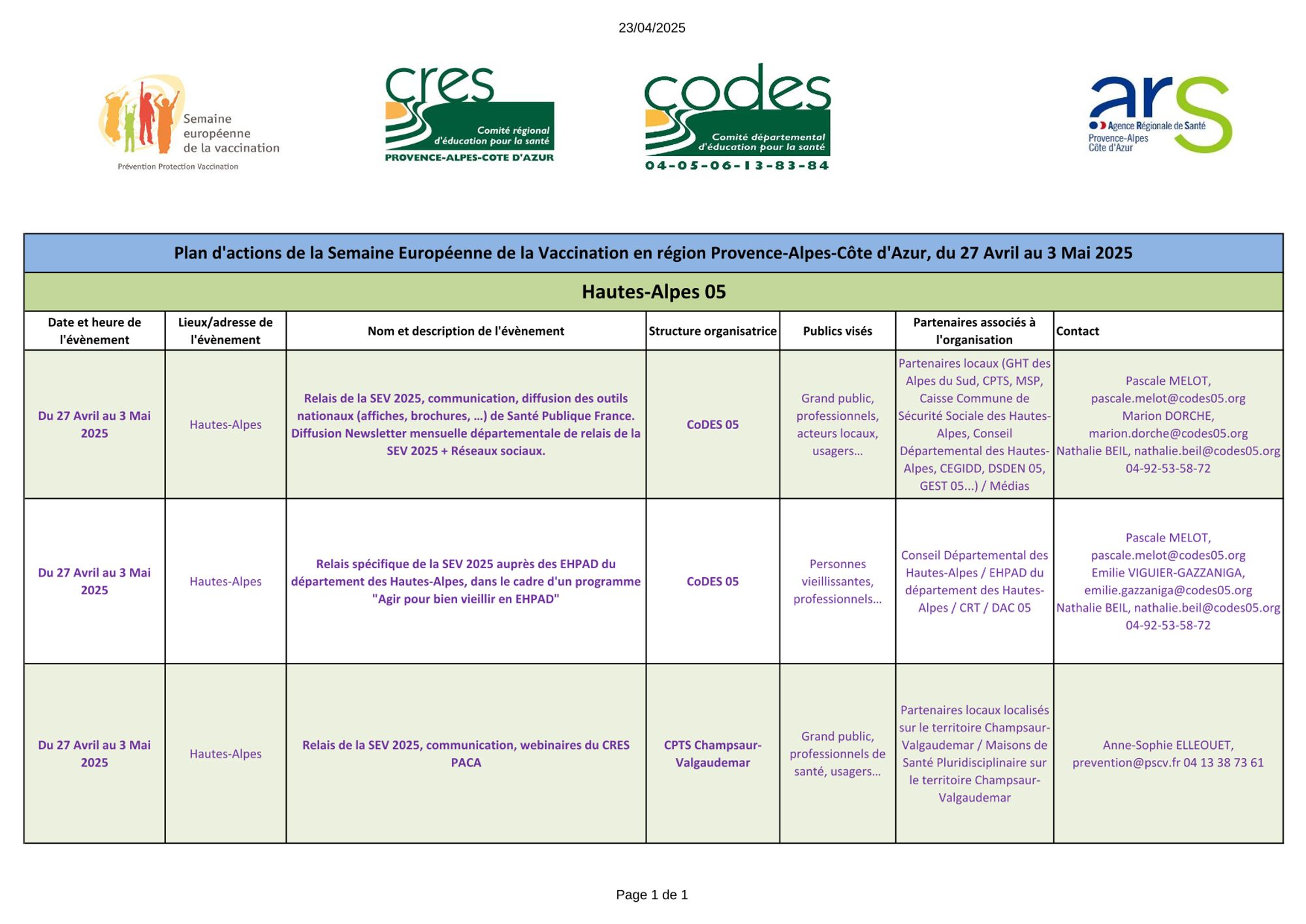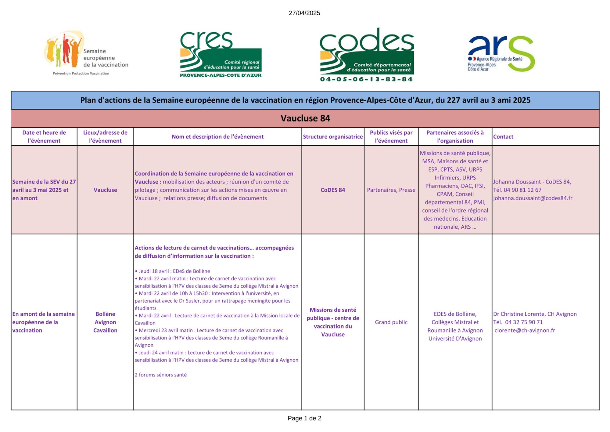 Contact : CoDES 04