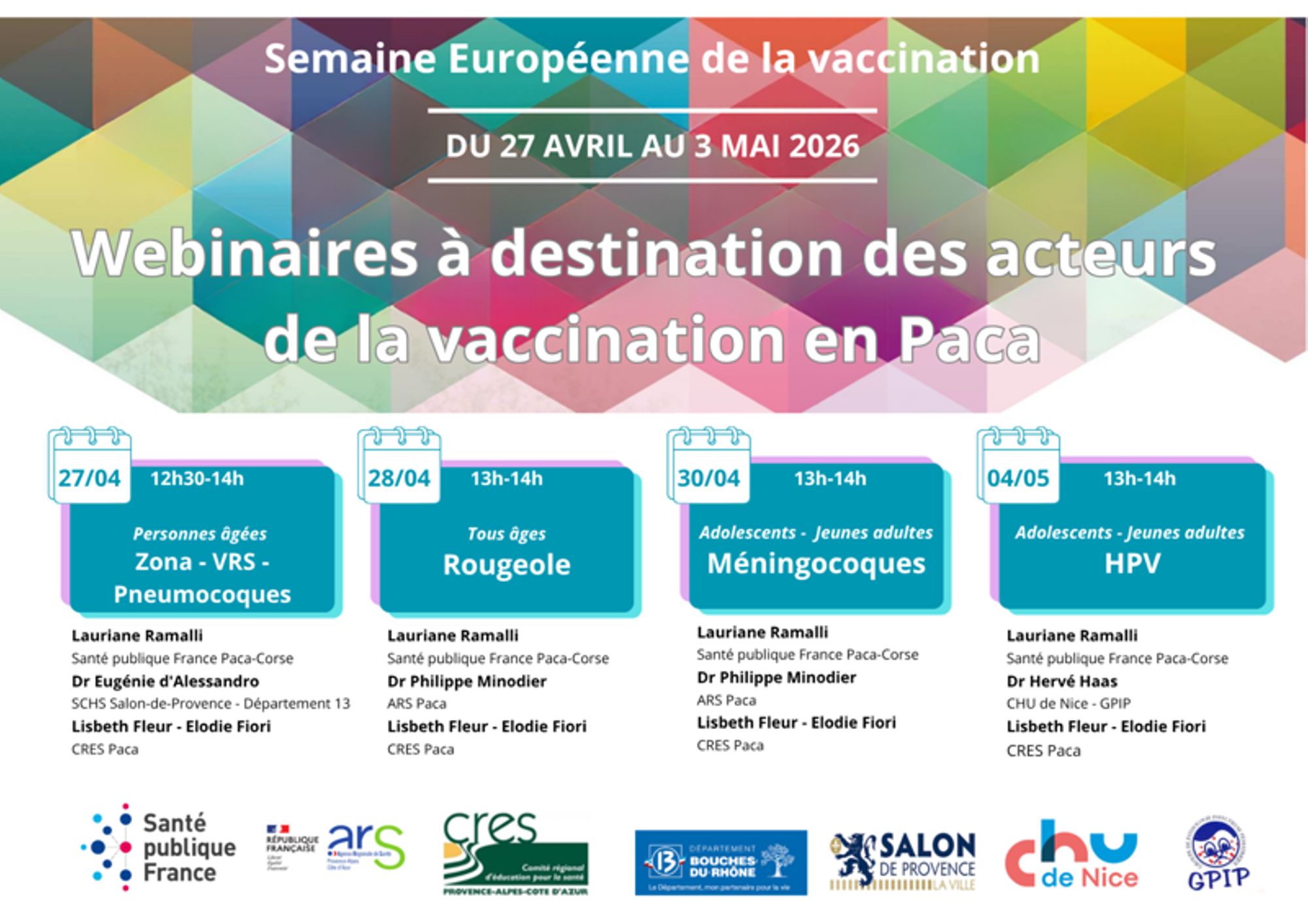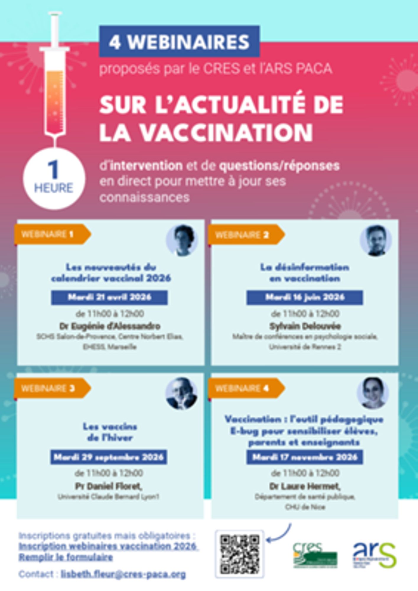 Le CRES, en partenariat avec l'ARS PACA, propose chaque année une série de 4 webinaires sur la vaccination, pour les professionnels de santé et de prévention de la région.