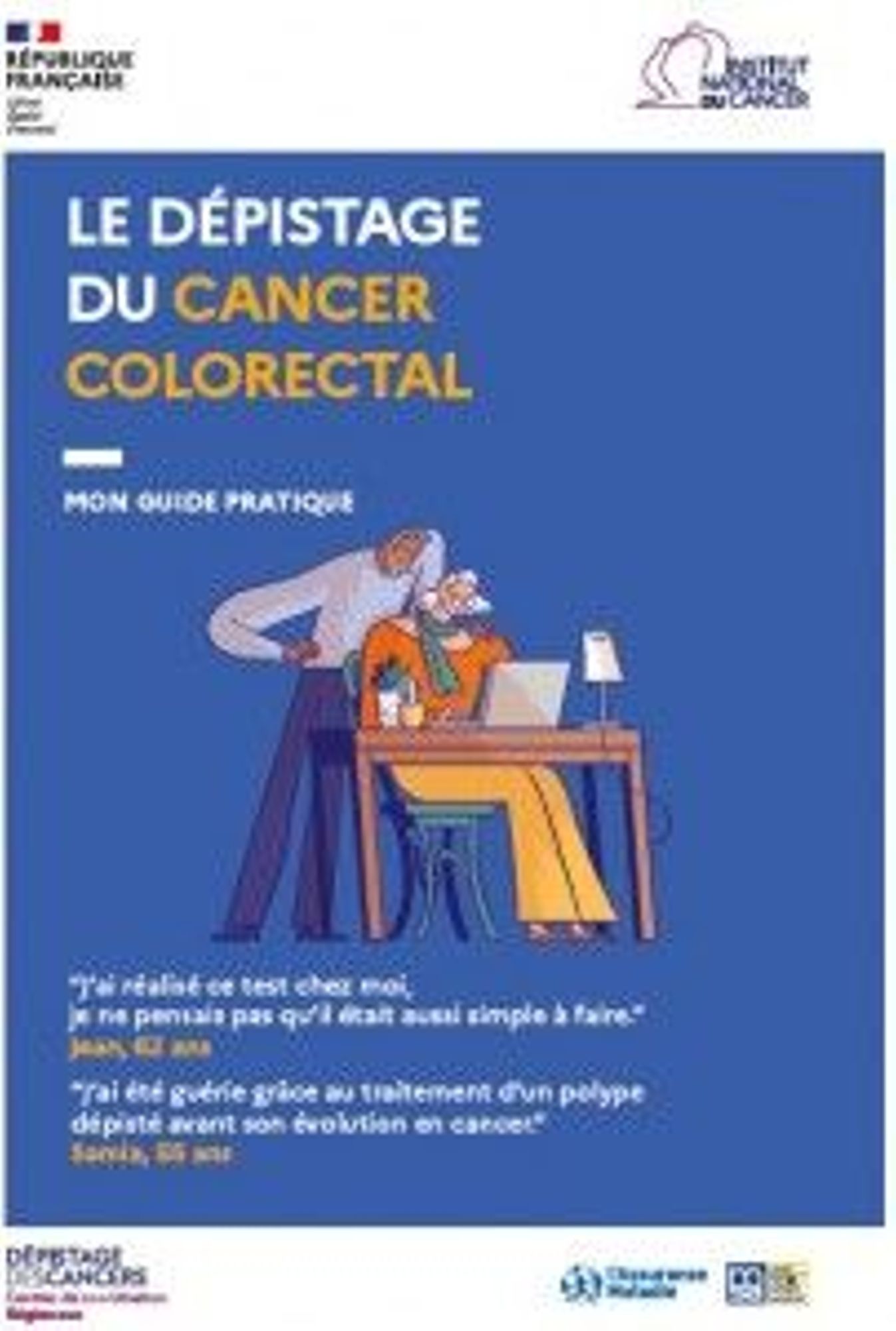 Le depistage du cancer colorectal. Mon guide pratique Institut National du Cancer Ce dépliant explique l’importance du dépistage du cancer colorectal et les modalités pratiques du test. 15X21 cm, en 2 volets Année 2022