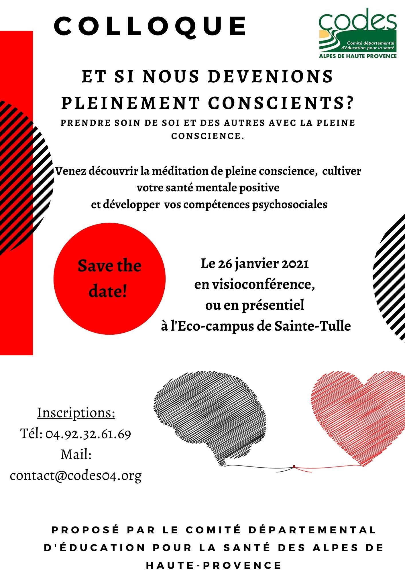 COLLOQUE "Et si nous devenions pleinement conscients ?" Le mardi 26 janvier 2021 Dernière modification : 16 décembre 2020 Pour vous inscrire, cliquez sur le lien ci-dessous: Inscription colloque