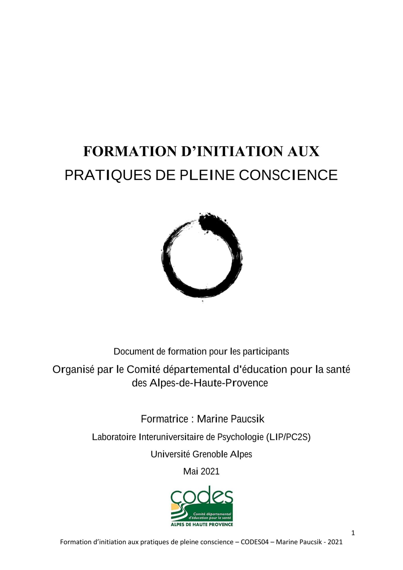Supports pédagogiques - Formation "Initiation aux pratiques de pleine conscience"