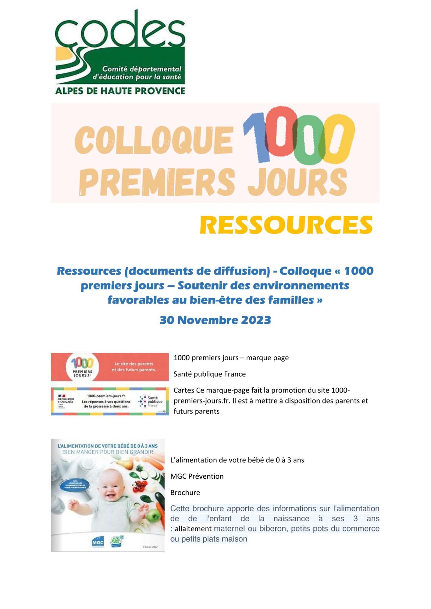 Colloque du 30 novembre 2023 - Les 1000 premiers jours, soutenir des environnements favorables au bien-être des familles