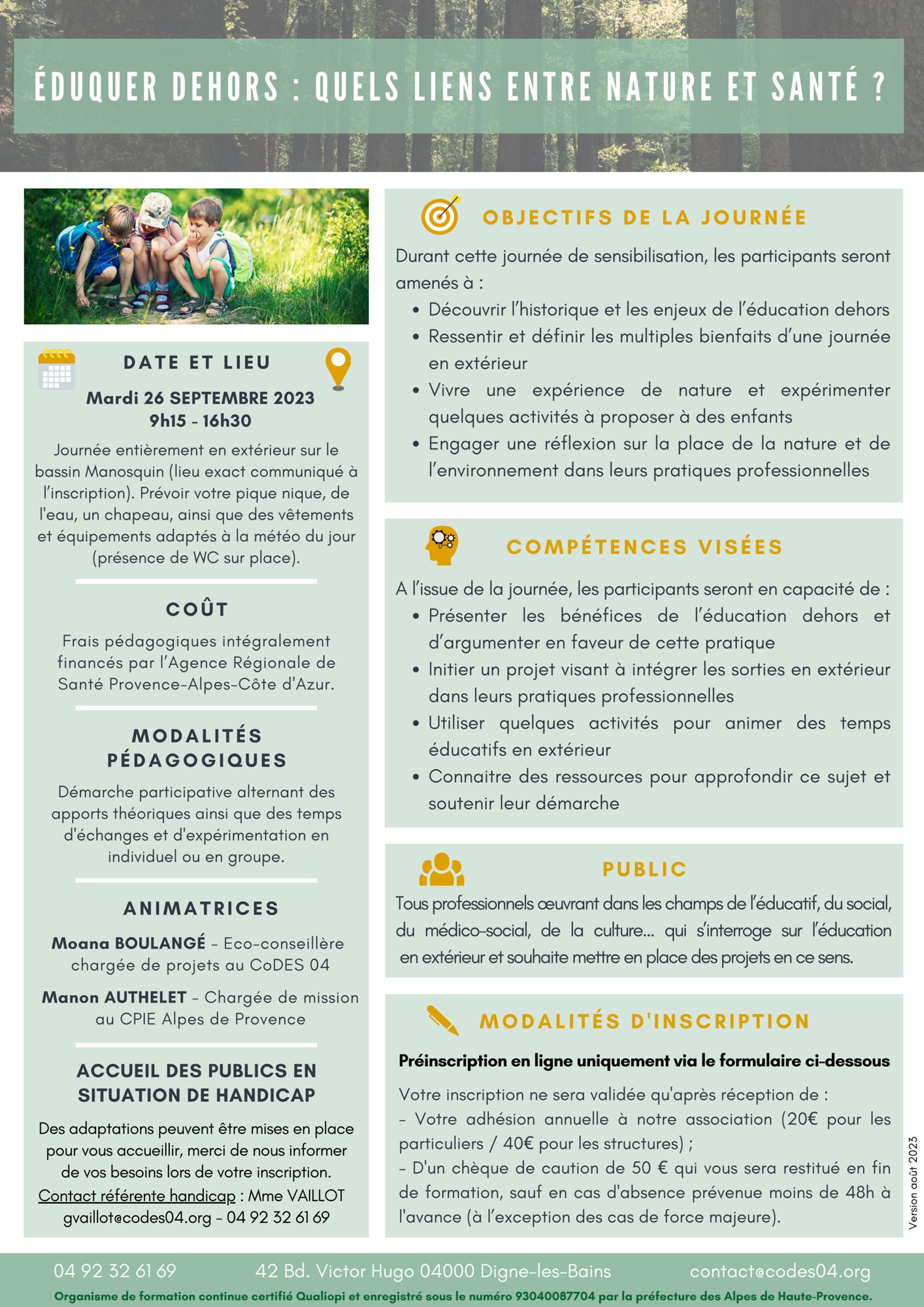 Préinscription en ligne uniquement via le formulaire ci-dessous