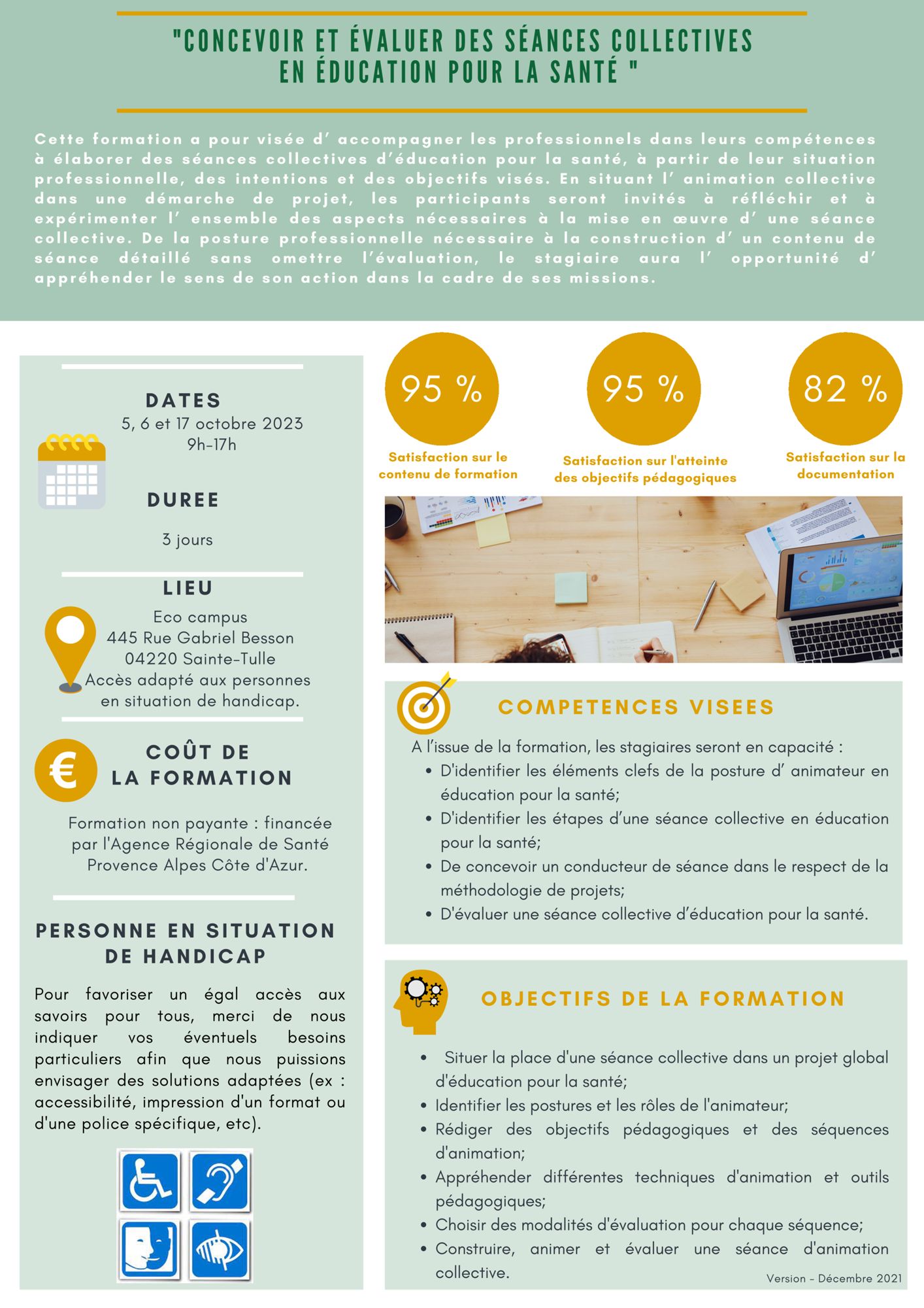 - De concevoir un conducteur de séance dans le respect de la méthodologie de projets; D'évaluer une séance collective d’éducation pour la santé.