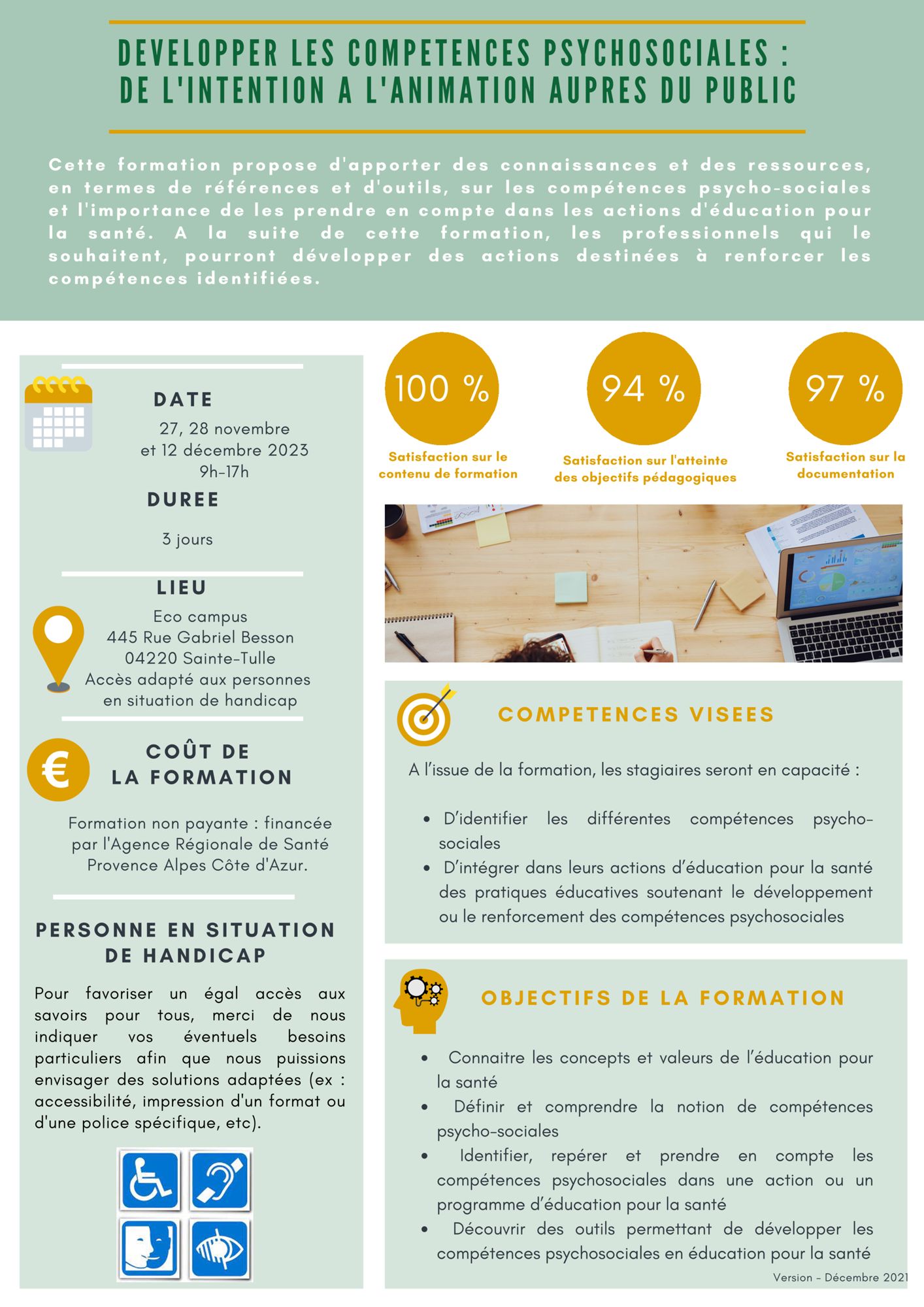 Développer les Compétences psychosociales : de l'intention à l'animation auprès des publics 2023
