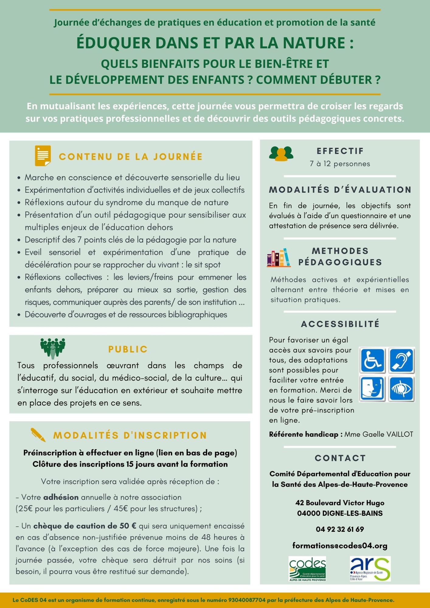 - Initier un projet visant à intégrer les sorties en extérieur dans leurs pratiques professionnelles