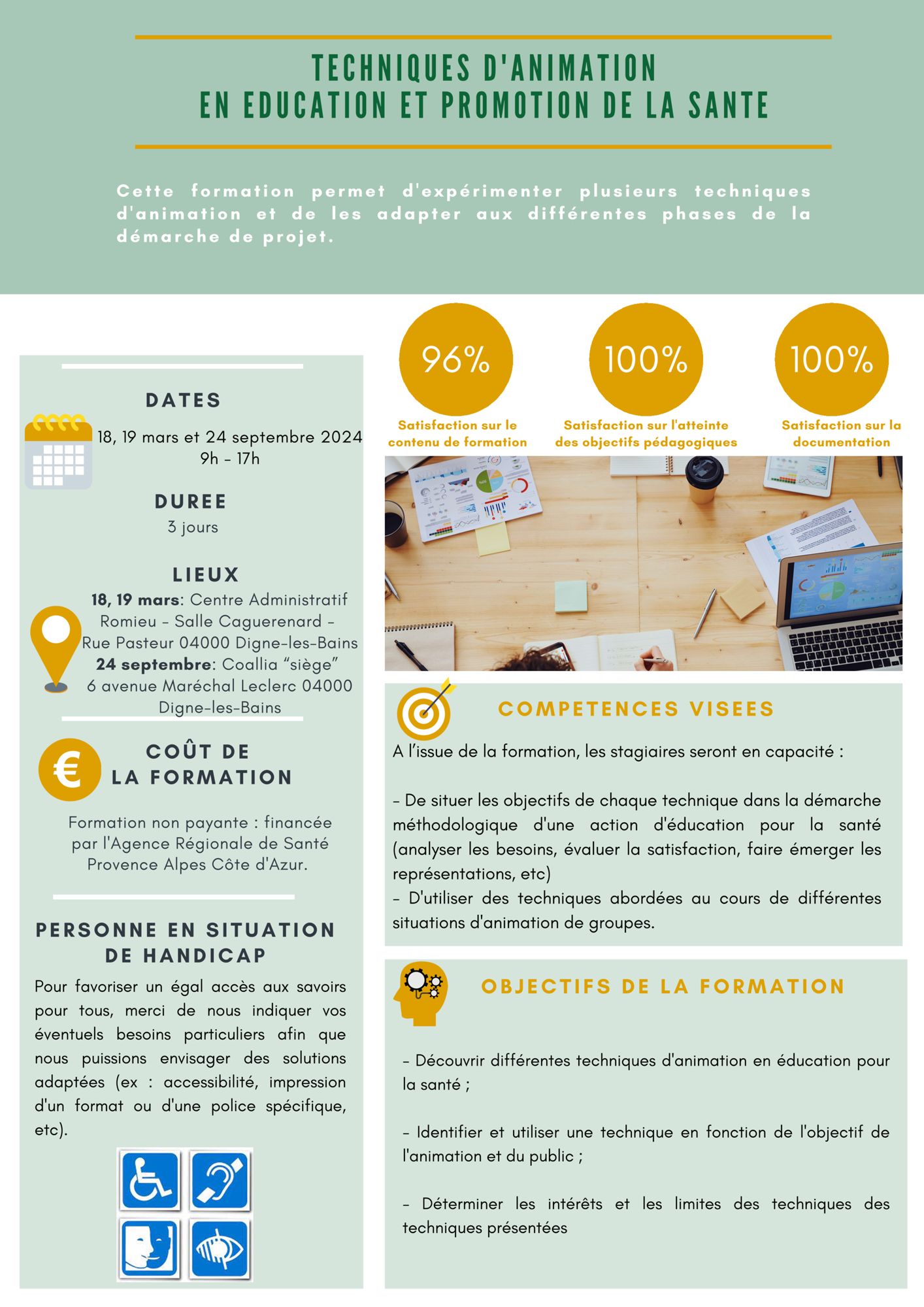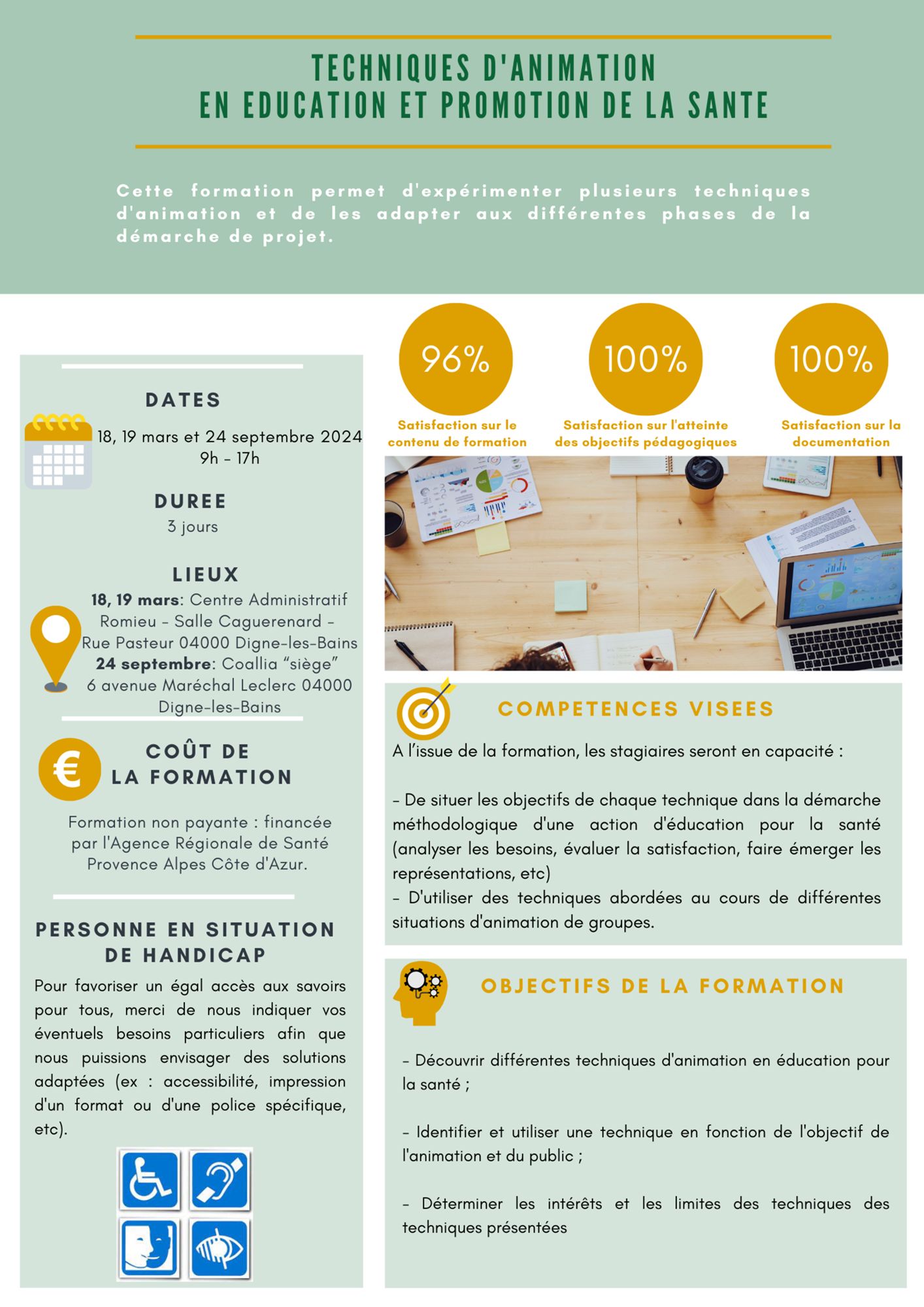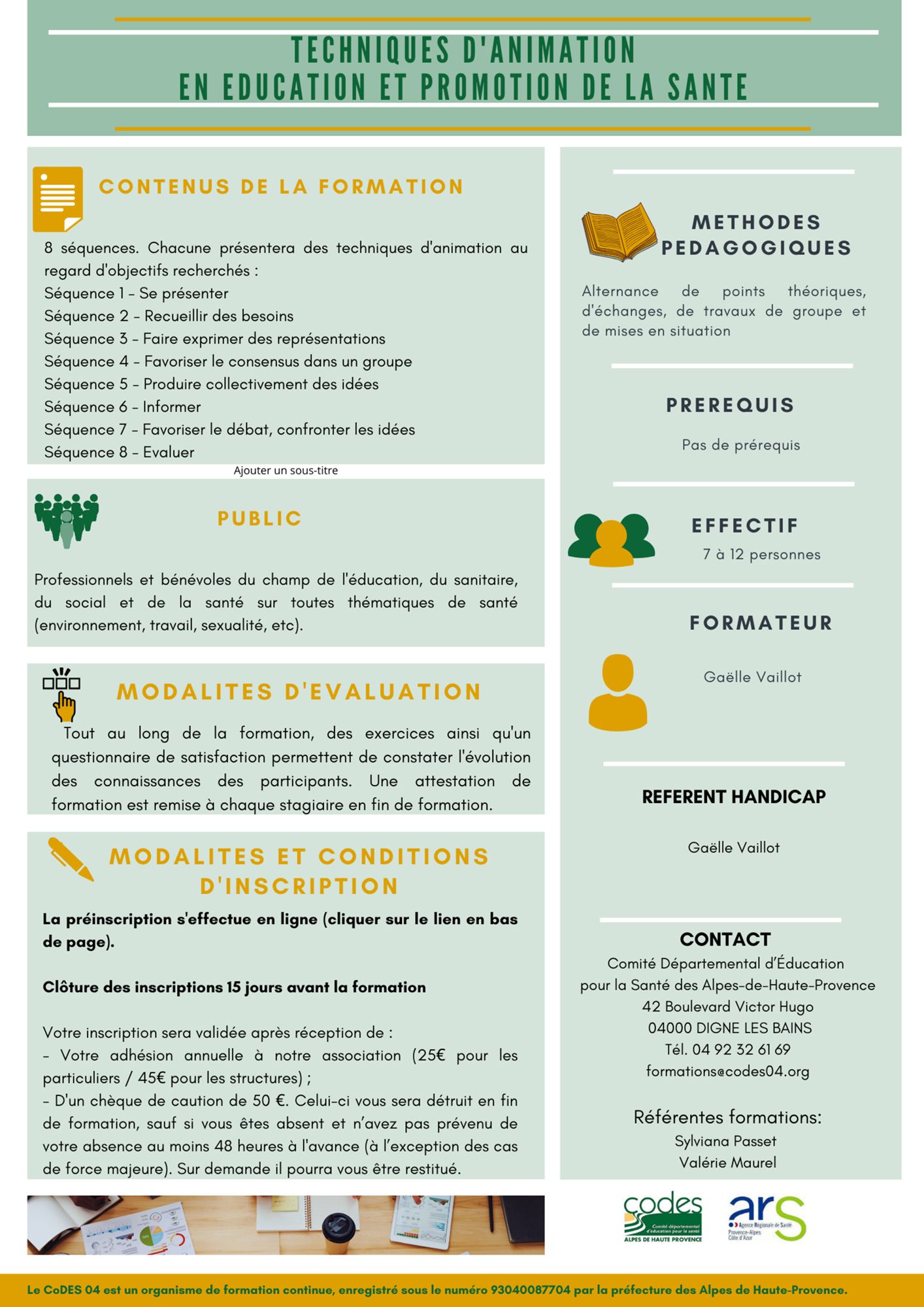- Découvrir différentes techniques d'animation en éducation pour la santé ;