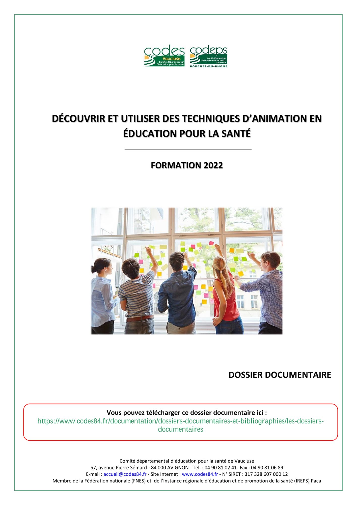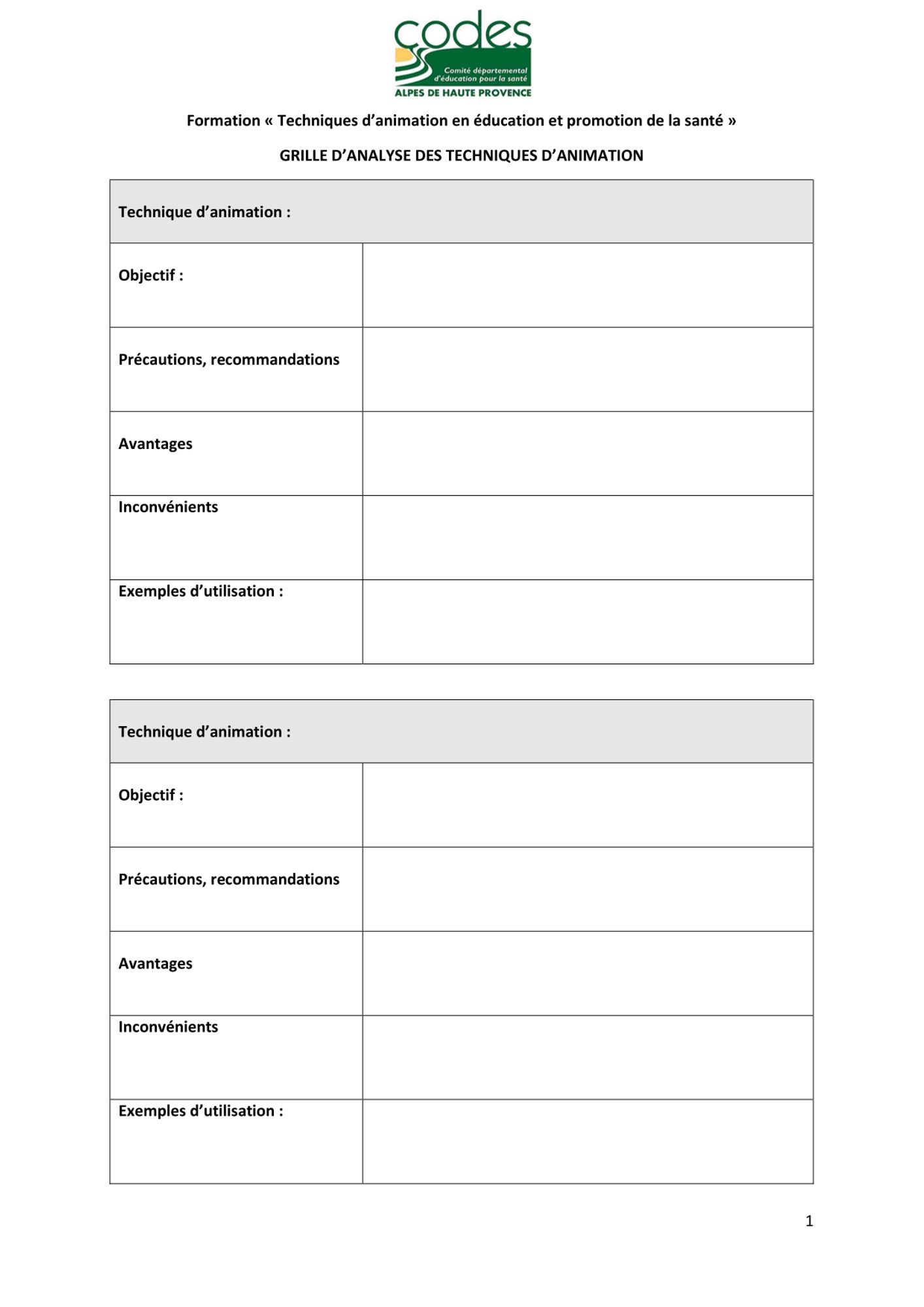 Espace privé - Formation Techniques d'animation PRESENTATION DU Co.D.E.S. 04 Catalogue des formations 2024 du Co.D.E.S. 04.pdf (5.6 Mo) Catalogue régional formations 2024.pdf (1.3 Mo) Service accompagnement de votre projet.pdf (4.1 Mo) CONTENU DE LA FORMATION Diaporama - Formation Techniques d'animation 2024 Jours 1 et 2.pdf (7.0 Mo) TA 2024 - Programme de formation.pdf (740.4 Ko) Grille d'analyse des techniques d'animation.pdf (427.2 Ko) RESSOURCES DE LA FORMATION Guide des techniques d'animation - FRAPS CENTRE.pdf (2.4 Mo) Les fiches méthodes - Techniques d'animation.pdf (5.0 Mo) Techniques d'animation - CRES Languedoc.pdf (430.9 Ko) Dossier documentaire Formation Techniques d'animation.pdf (19.1 Mo)