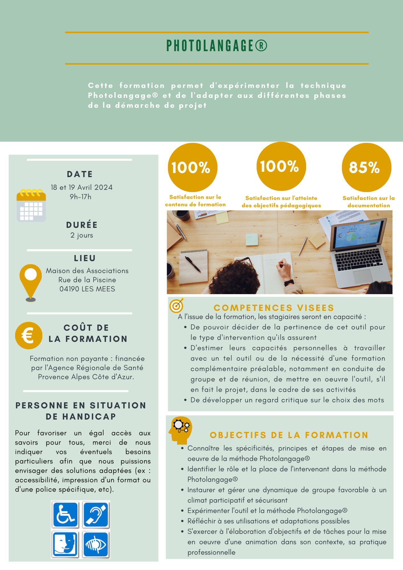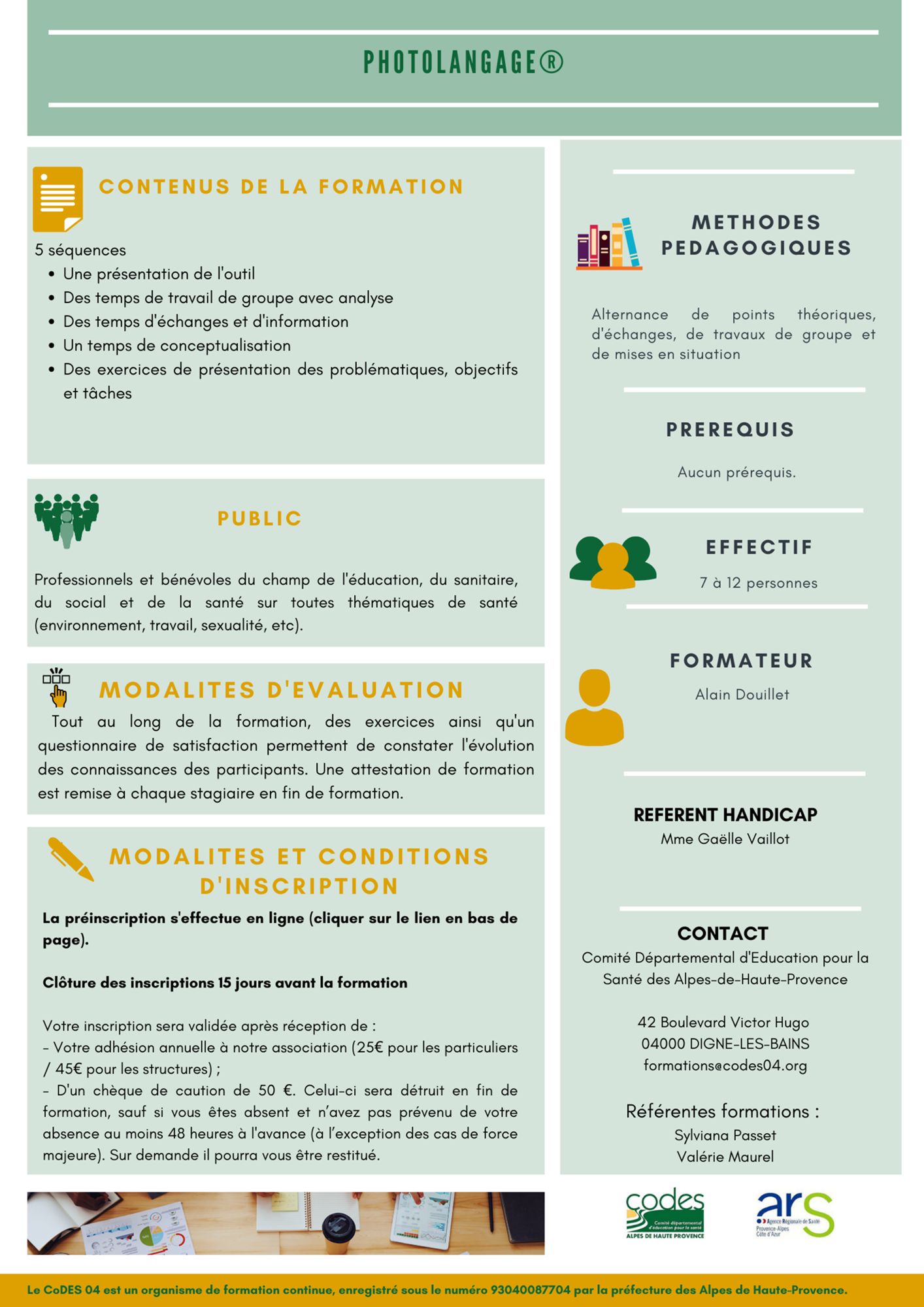 - Connaître les spécificités, principes et étapes de mise en oeuvre de la méthode Photolangage®