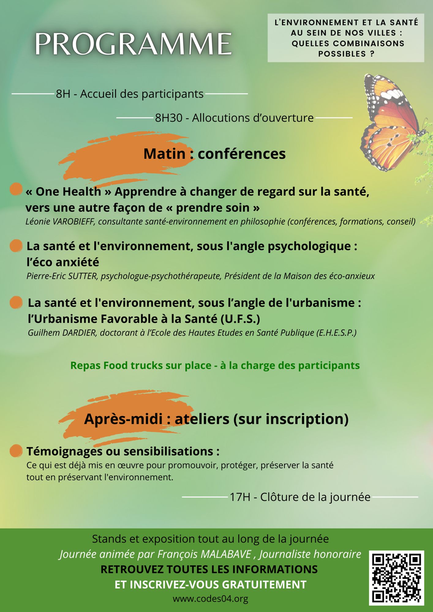 - Eco-anxiété, la santé et l’environnement sous l’angle psychologique : Pierre-Eric SUTTER, psychologue-psychothérapeute et Président de la Maison des éco-anxieux, Directeur de l'OBservatoire des VEcus du COllapse (OBVECO) et de l’OBservatoire de l’ECo Anxiété (OBSECA)