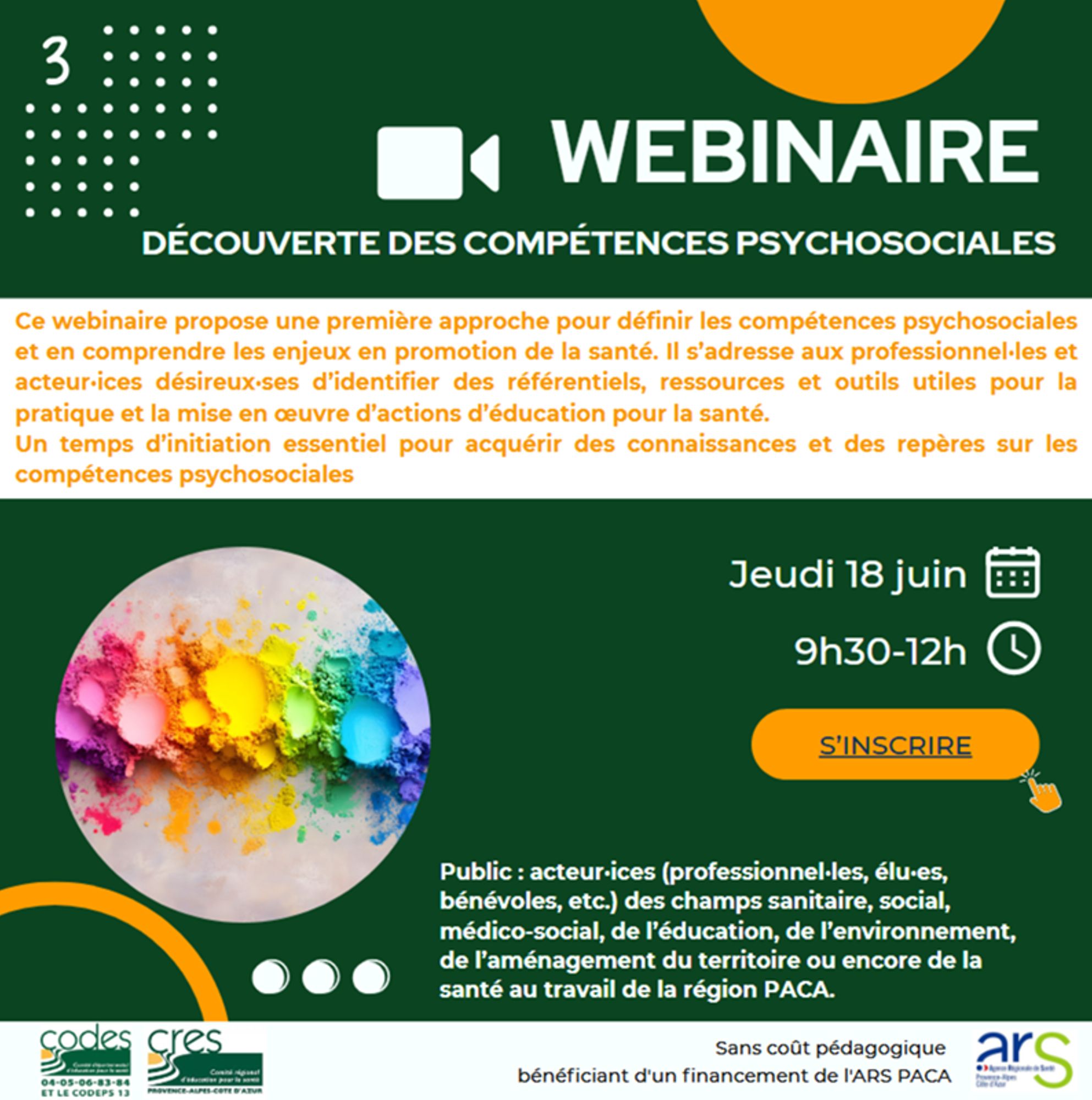 Webinaire sans coût pédagogique bénéficiant d’un financement de l’ARS PACA, inscription ci-dessous.